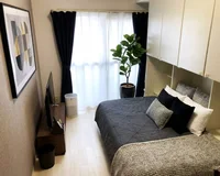 TVボード(付属)・ハンガー・ウォールミラー・リモコン・BOXティッシュ・鏡・カーテン・時計・ダストBOX・リセッシュ・使い捨てスリッパ・芳香剤・靴ベラ・システムキッチン(1口IHコンロ)・(寝具セットは業者様からご提供により別途費用)